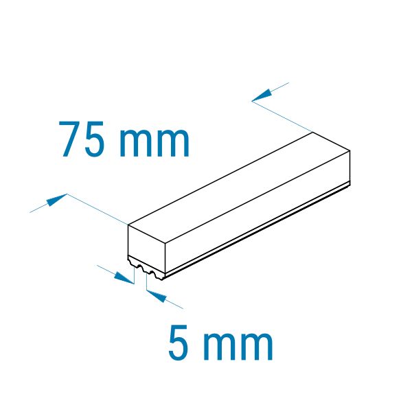 Profil: AT5 | Breite: 75 mm | Mitnahme: hoch | Oberfläche: rau | Abriebfestigkeit: niedrig | für Führen, Zentrieren, Anpressen, Etiketten