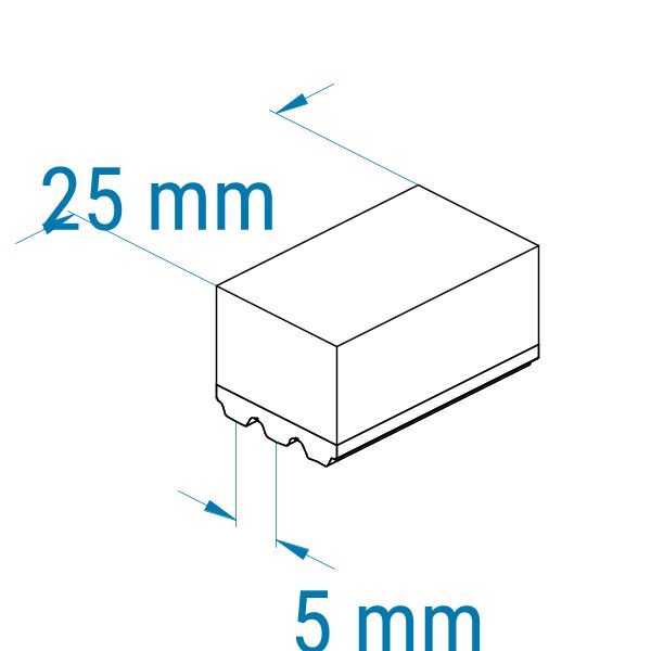 Profil: AT5 | Breite: 25 mm | Mitnahme: hoch | Oberfläche: rau | Abriebfestigkeit: niedrig | für Führen, Zentrieren, Anpressen, Etiketten