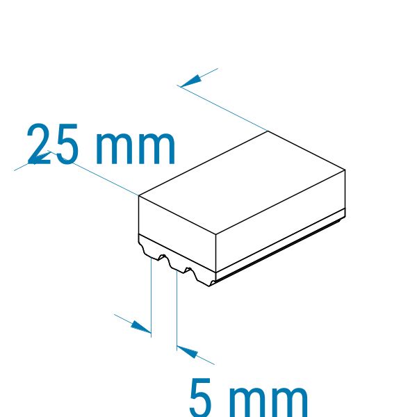Profil: AT5 | Breite: 25 mm | Mitnahme: hoch | Oberfläche: rau | Abriebfestigkeit: niedrig | für Führen, Zentrieren, Anpressen, Etiketten