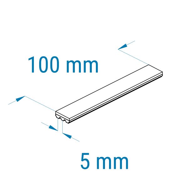 Profil: AT5 | Breite: 100 mm | Mitnahme: hoch | Oberfläche: glatt | Abriebfestigkeit: mittel-hoch | für empfindliche Teile, Verpackungen, Kartonagen, Führen, Anpressen