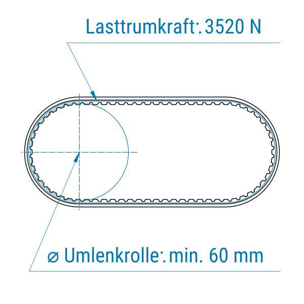 Zahnriemen 100-AT5-V-Stahl mit Linatex 2 mm