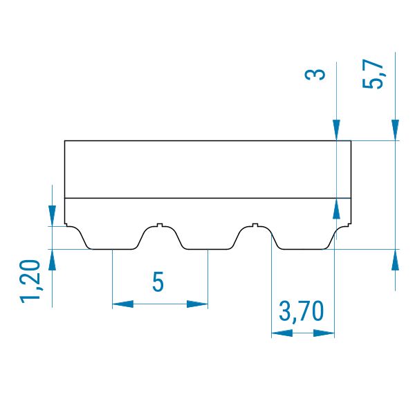 Profil: AT5 | Breite: 100 mm | Mitnahme: hoch | Oberfläche: glatt | Abriebfestigkeit: mittel-hoch | für empfindliche Teile, Verpackungen, Kartonagen, Führen, Anpressen