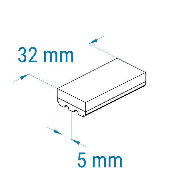 Profil: AT5 | Breite: 32 mm | Mitnahme: hoch | Oberfläche: glatt | Abriebfestigkeit: mittel-hoch | für empfindliche Teile, Verpackungen, Kartonagen, Führen, Anpressen