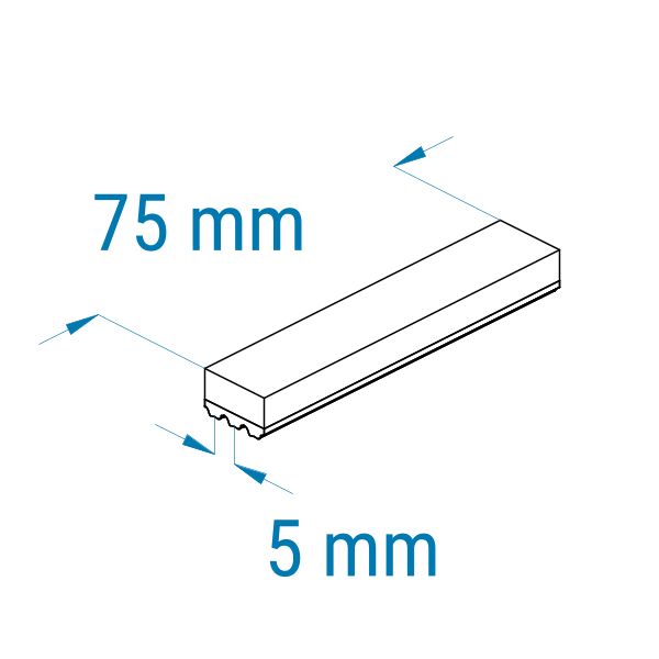 Profil: AT5 | Breite: 75 mm | Mitnahme: hoch | Oberfläche: glatt | Abriebfestigkeit: mittel-hoch | für empfindliche Teile, Verpackungen, Kartonagen, Führen, Anpressen