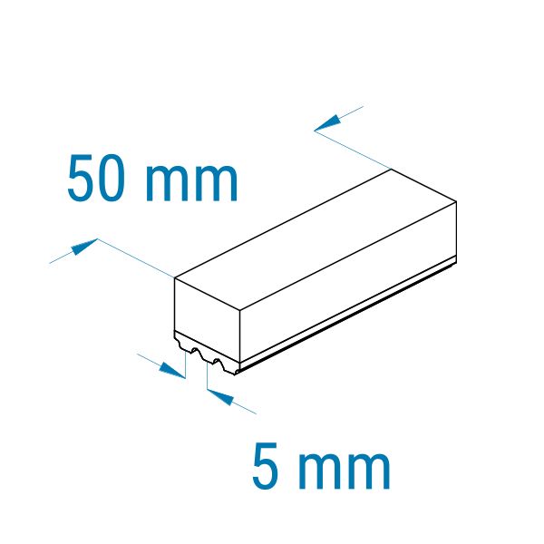 Profil: AT5 | Breite: 50 mm | Mitnahme: hoch | Oberfläche: glatt | Abriebfestigkeit: niedrig | für Führen, Zentrieren, Anpressen, Etiketten