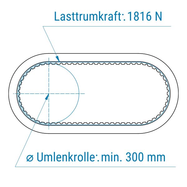 Zahnriemen 50-AT5-V-PAZ-Kevlar mit Porol NE/Gewebe blau 10 mm