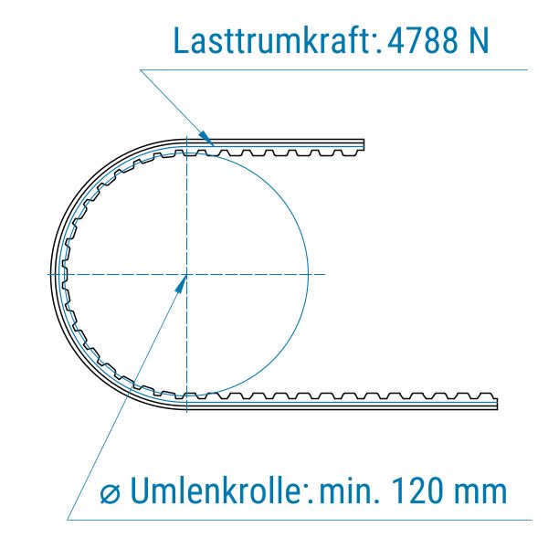 Zahnriemen 32-AT10-offen-PAZ-Stahl mit PVC blau (petrol) 2 mm