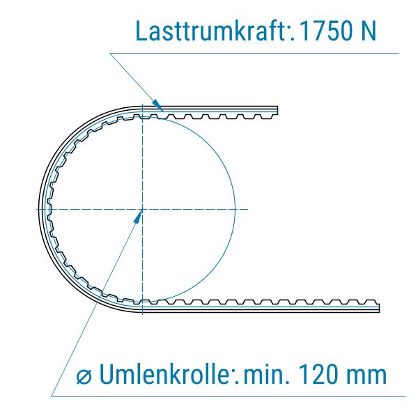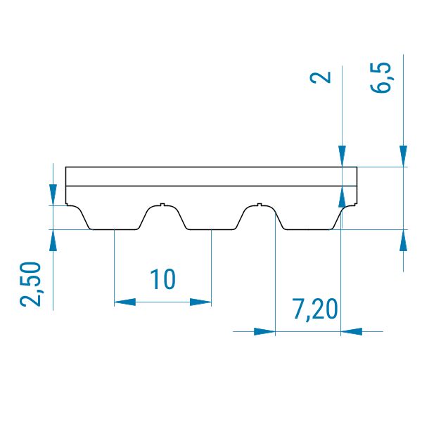 Zahnriemen 25-AT10-offen-PAZ-Kevlar mit PVC blau (petrol) 2 mm