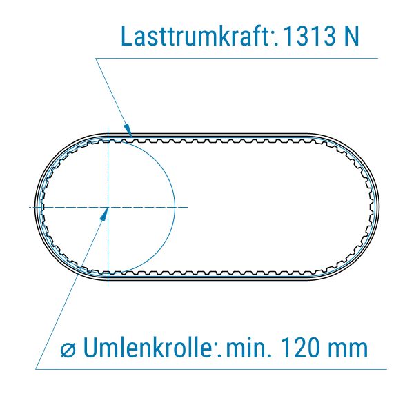Zahnriemen 25-AT10-V-PAZ-Kevlar mit PVC blau (petrol) 2 mm