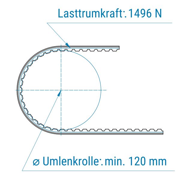Zahnriemen 10-AT10-offen-Stahl mit PVC Grip petrol