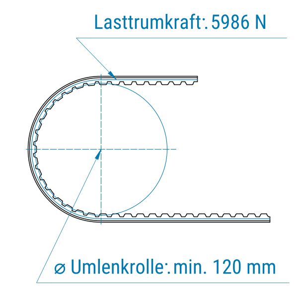 Zahnriemen 40-AT10-offen-Stahl mit PVC Grip petrol
