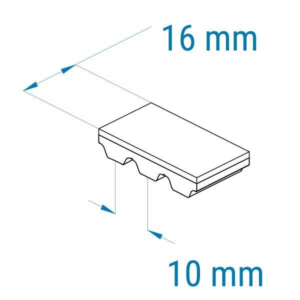 Profil: AT10 | Breite: 16 mm | Mitnahme: hoch | Oberfläche: Struktur, grob | Abriebfestigkeit: mittel | für Nasstransport, Lebensmittel, Kunststoffverpackungen