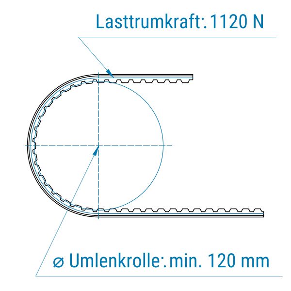Zahnriemen 16-AT10-offen-Kevlar mit PVC Längsrille petrol