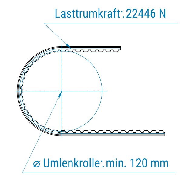 Zahnriemen 150-AT10-offen-PAZ-Stahl mit PVC Längsrille petrol