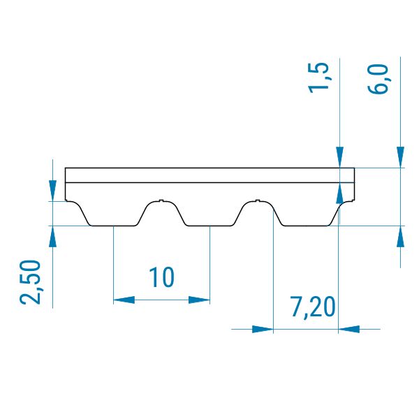 Zahnriemen 40-AT10-offen-PAZ-Kevlar mit PVC Längsrille petrol