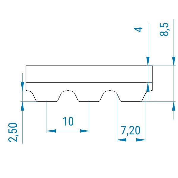 Zahnriemen 100-AT10-offen-Stahl mit Polythan D44 72° 4 mm