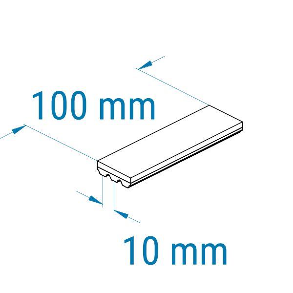 Profil: AT10 | Breite: 100 mm | Mitnahme: mittel | Oberfläche: glatt | Abriebfestigkeit: hoch | für Glas, Holz, Bleche, Kunststoff