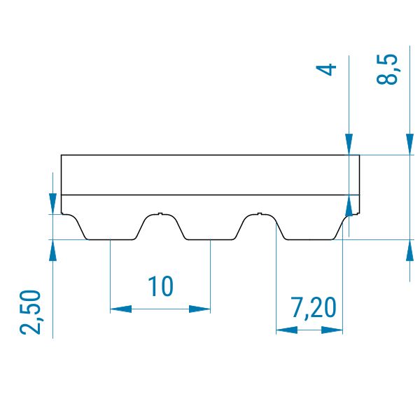 Zahnriemen 25-AT10-V-Stahl mit Polythan D44 72° 4 mm