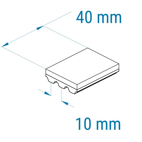 Profil: AT10 | Breite: 40 mm | Mitnahme: mittel | Oberfläche: glatt | Abriebfestigkeit: hoch | für Glas, Holz, Bleche, Kunststoff