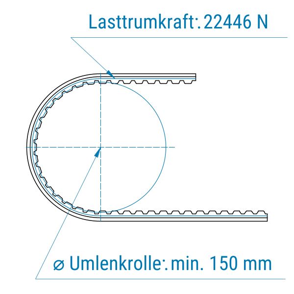 Zahnriemen 150-AT10-offen-Stahl mit PU SP blau FDA