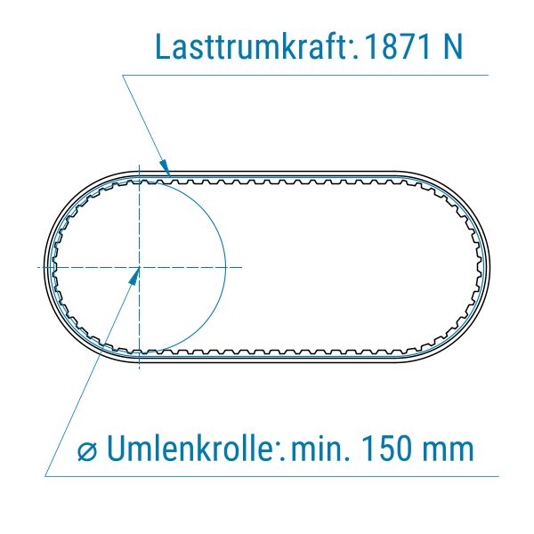 Zahnriemen 25-AT10-V-Stahl mit PU SP blau FDA