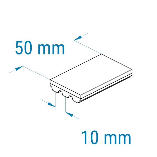 Profil: AT10 | Breite: 50 mm | Mitnahme: hoch | Oberfläche: glatt | Abriebfestigkeit: mittel-hoch | für empfindliche Teile, Verpackungen, Kartonagen, Führen, Anpressen