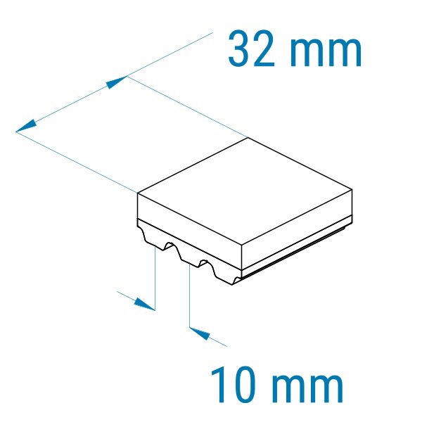 Profil: AT10 | Breite: 32 mm | Mitnahme: hoch | Oberfläche: glatt | Abriebfestigkeit: niedrig | für Führen, Zentrieren, Anpressen, Etiketten