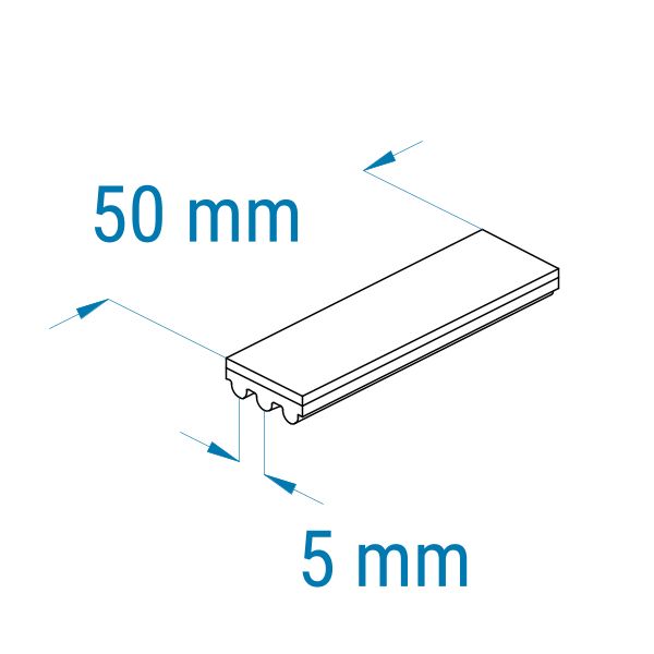 Profil: 5M (HTD) | Breite: 50 mm | Mitnahme: hoch | Oberfläche: Struktur, fein | Abriebfestigkeit: mittel | für Holz, Kunststoffkästen, Kartonagen, Gibtskarton