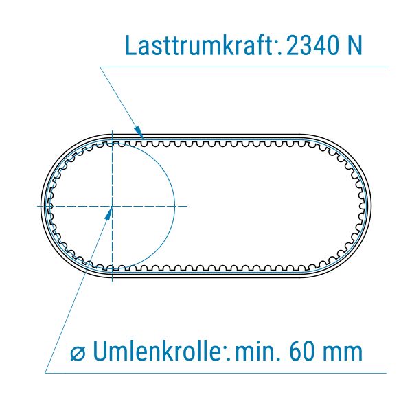 Zahnriemen 50-5M (HTD)-V-PAZ-Stahl mit PVC Grip petrol