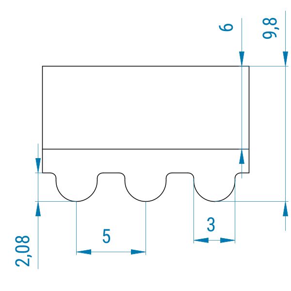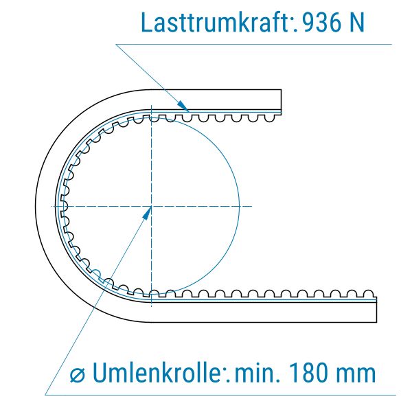 Profil: 5M (HTD) | Breite: 10 mm | Mitnahme: hoch | Oberfläche: rau | Abriebfestigkeit: niedrig | für Führen, Zentrieren, Anpressen, Etiketten