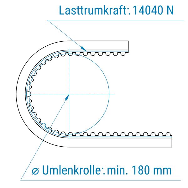 Profil: 5M (HTD) | Breite: 150 mm | Mitnahme: hoch | Oberfläche: rau | Abriebfestigkeit: niedrig | für Führen, Zentrieren, Anpressen, Etiketten