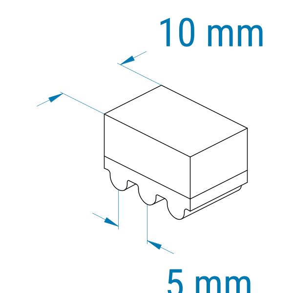 Profil: 5M (HTD) | Breite: 10 mm | Mitnahme: hoch | Oberfläche: rau | Abriebfestigkeit: niedrig | für Führen, Zentrieren, Anpressen, Etiketten