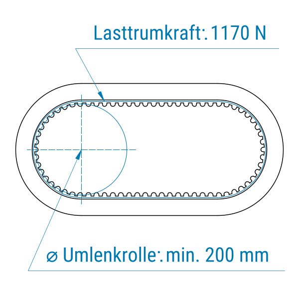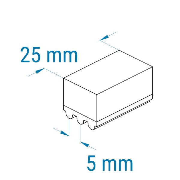 Profil: 5M (HTD) | Breite: 25 mm | Mitnahme: hoch | Oberfläche: rau | Abriebfestigkeit: niedrig | für Führen, Zentrieren, Anpressen, Etiketten