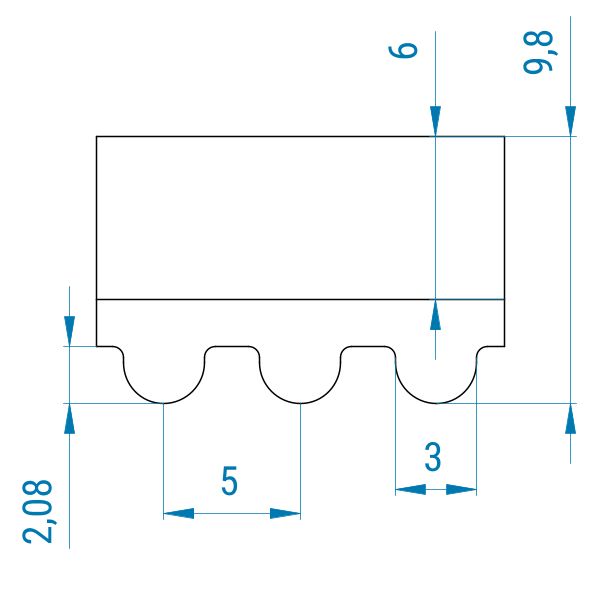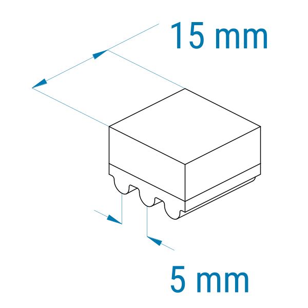 Profil: 5M (HTD) | Breite: 15 mm | Mitnahme: hoch | Oberfläche: rau | Abriebfestigkeit: niedrig | für Führen, Zentrieren, Anpressen, Etiketten