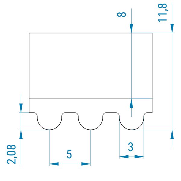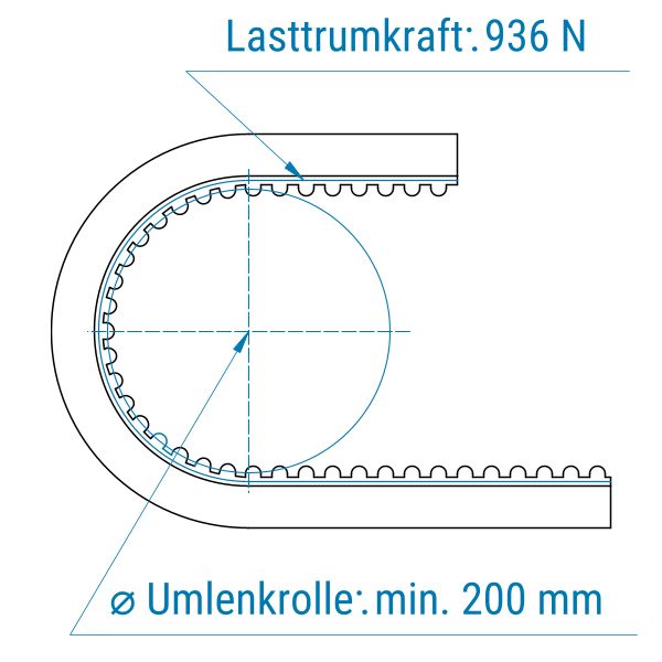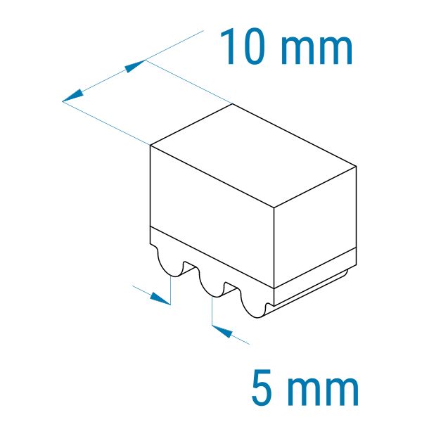 Profil: 5M (HTD) | Breite: 10 mm | Mitnahme: hoch | Oberfläche: glatt | Abriebfestigkeit: mittel-hoch | für empfindliche Teile, Verpackungen, Kartonagen, Führen, Anpressen
