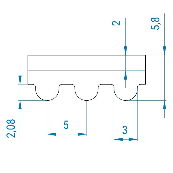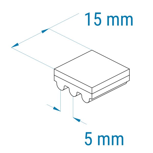 Profil: 5M (HTD) | Breite: 15 mm | Mitnahme: hoch | Oberfläche: glatt | Abriebfestigkeit: niedrig | für Führen, Zentrieren, Anpressen, Etiketten