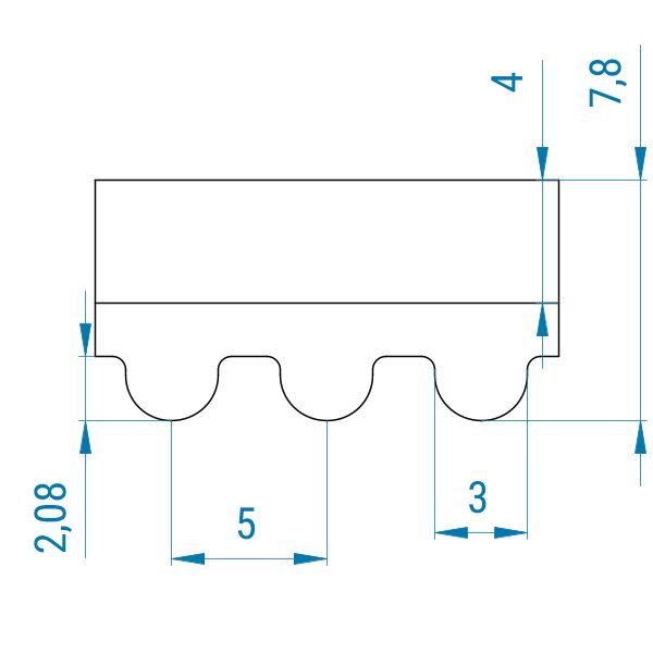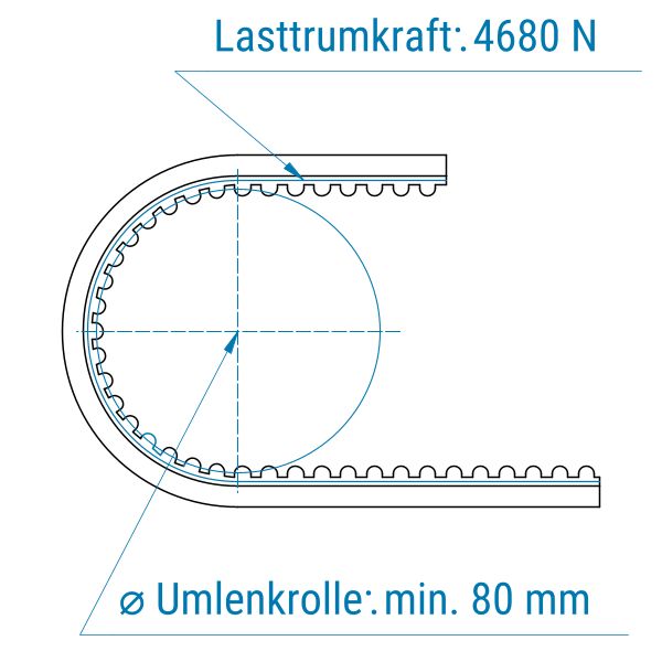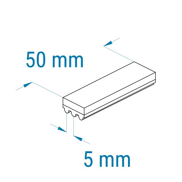 Profil: 5M (HTD) | Breite: 50 mm | Mitnahme: hoch | Oberfläche: glatt | Abriebfestigkeit: niedrig | für Führen, Zentrieren, Anpressen, Etiketten