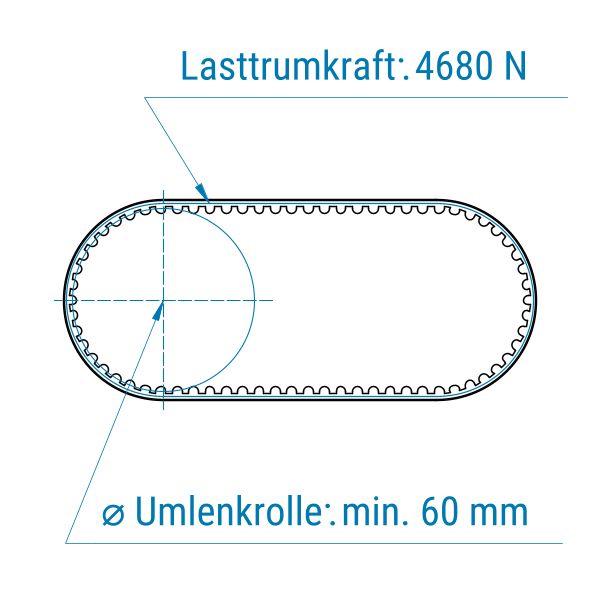 Profil: 5M (HTD) | Breite: 100 mm | Mitnahme: gering | Oberfläche: Struktur, fein | Abriebfestigkeit: mittel-hoch | für Doppelgurtförderer, Stauförderer, Glas, Metall