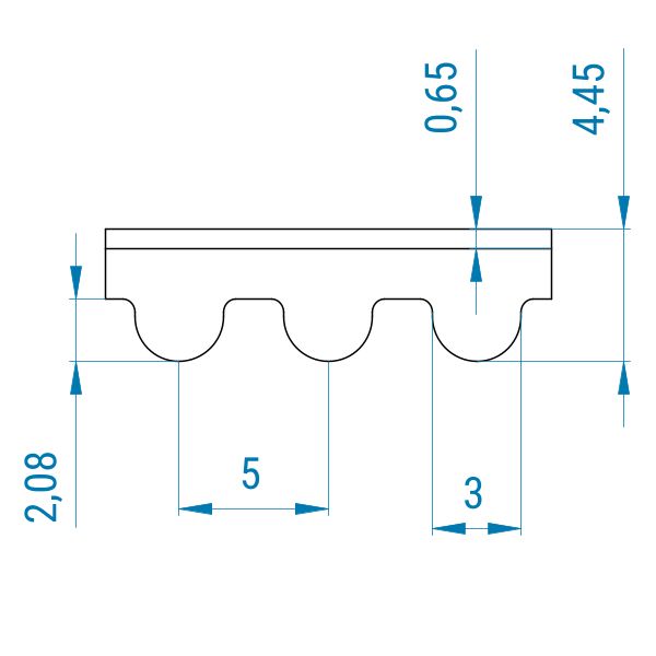 Profil: 5M (HTD) | Breite: 100 mm | Mitnahme: gering | Oberfläche: Struktur, fein | Abriebfestigkeit: mittel-hoch | für Doppelgurtförderer, Stauförderer, Glas, Metall