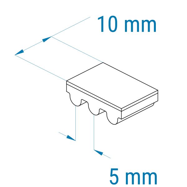 Profil: 5M (HTD) | Breite: 10 mm | Mitnahme: gering | Oberfläche: Struktur, fein | Abriebfestigkeit: mittel-hoch | für Doppelgurtförderer, Stauförderer, Glas, Metall