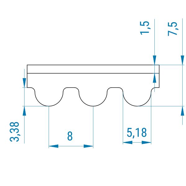 Zahnriemen 150-8M (HTD)-offen-Stahl mit PVC Grip petrol