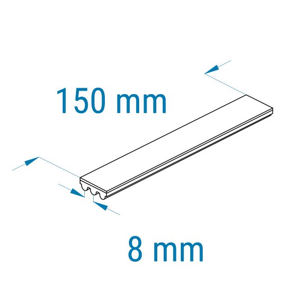 Profil: 8M (HTD) | Breite: 150 mm | Mitnahme: hoch | Oberfläche: Struktur, fein | Abriebfestigkeit: mittel | für Holz, Kunststoffkästen, Kartonagen, Gibtskarton