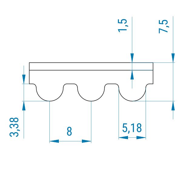 Zahnriemen 50-8M (HTD)-offen-PAZ-Stahl mit PVC Grip petrol