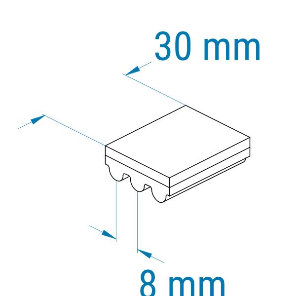 Profil: 8M (HTD) | Breite: 30 mm | Mitnahme: hoch | Oberfläche: Struktur, grob | Abriebfestigkeit: hoch | für Lebensmittel, Fleisch-, Wurstverarbeitung, Gefriergut | für Lebensmittel geeignet nach FDA oder EU10/2011