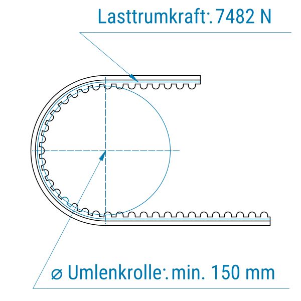 Zahnriemen 50-8M (HTD)-offen-Stahl mit PU SP blau FDA