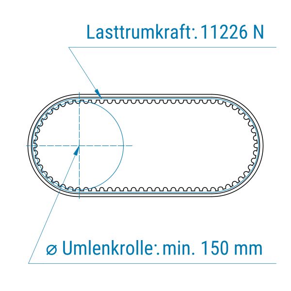 Zahnriemen 150-8M (HTD)-V-Stahl mit PU SP blau FDA