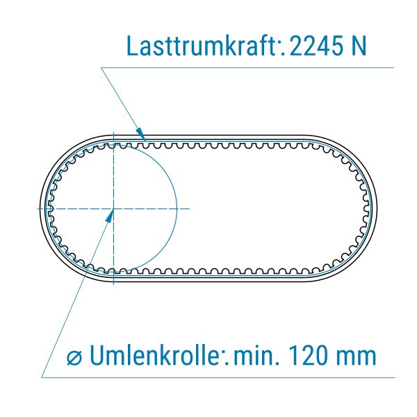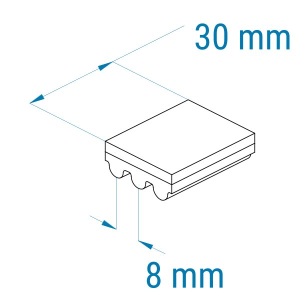 Profil: 8M (HTD) | Breite: 30 mm | Mitnahme: hoch | Oberfläche: glatt | Abriebfestigkeit: mittel | für hohe Temperaturen, Metall, Glas, Kunststoff