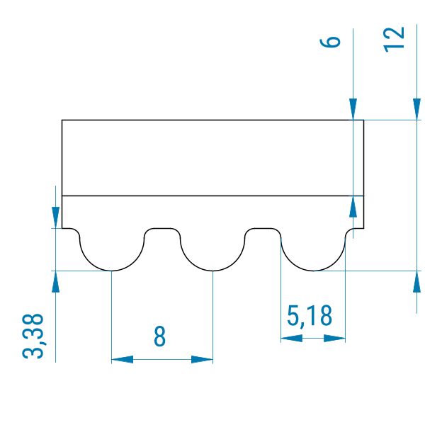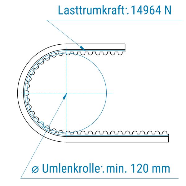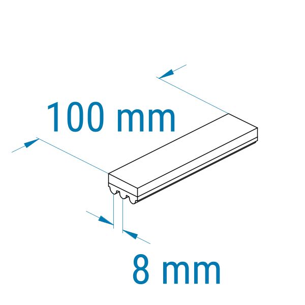 Profil: 8M (HTD) | Breite: 100 mm | Mitnahme: hoch | Oberfläche: glatt | Abriebfestigkeit: niedrig | für Führen, Zentrieren, Anpressen, Etiketten