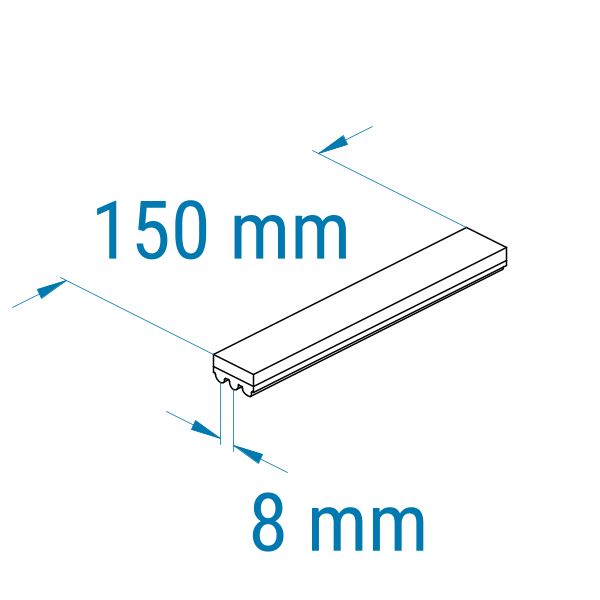 Profil: 8M (HTD) | Breite: 150 mm | Mitnahme: hoch | Oberfläche: glatt | Abriebfestigkeit: niedrig | für Führen, Zentrieren, Anpressen, Etiketten