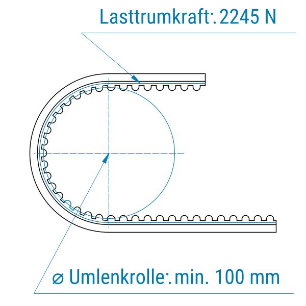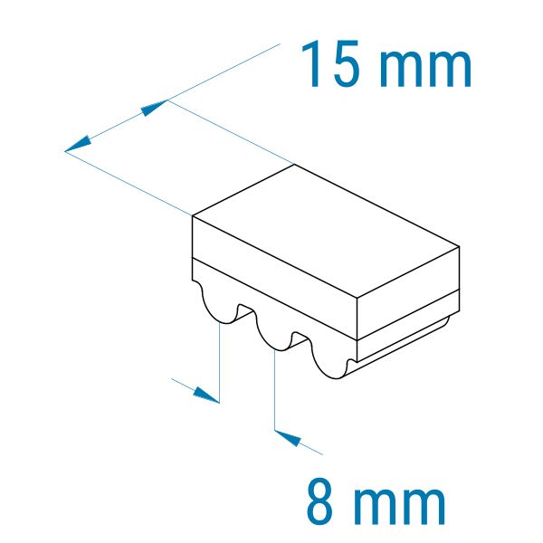 Profil: 8M (HTD) | Breite: 15 mm | Mitnahme: hoch | Oberfläche: rau | Abriebfestigkeit: niedrig | für Porzellan, Seifen